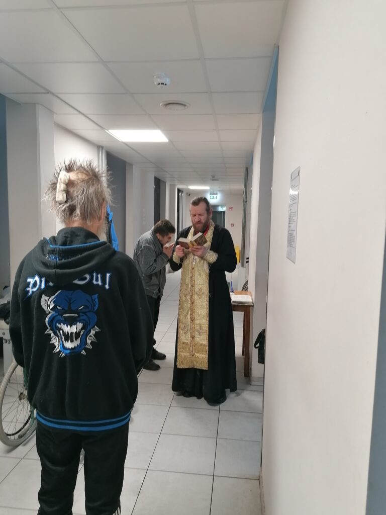Во вторник, 24 февраля, на первой седмице Великого поста иерей Владислав Дракшас совместно со старшей сестрой сестричества прп. Харитины Литовской Людмилой Калошиной посетили ночлежный дом на улице Коелавичаус 50.
